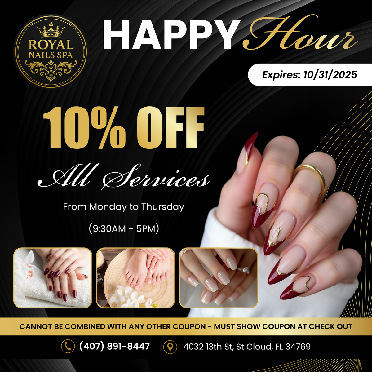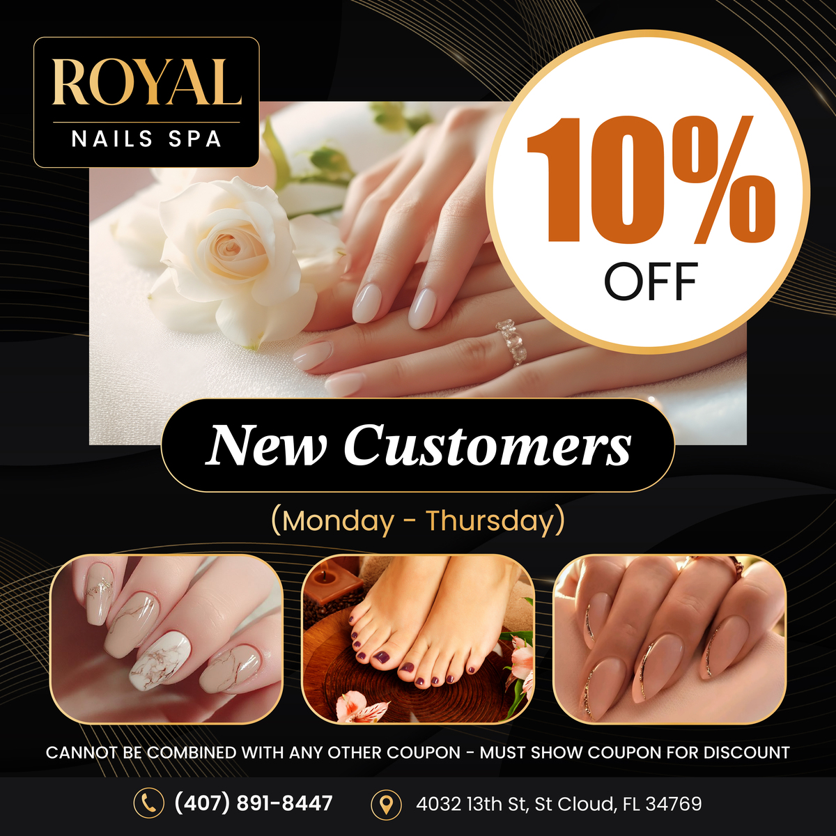 Welcome to Royal Nails Spa. Located at a beautiful place in St Cloud, FL 34769, Royal Nails Spa offers the ultimate in pampering and restoring your beauty with our whole-hearted, careful & professional staff. Comprehending customer is not an easy task. It’s even harder when it comes to nail art & caring services.